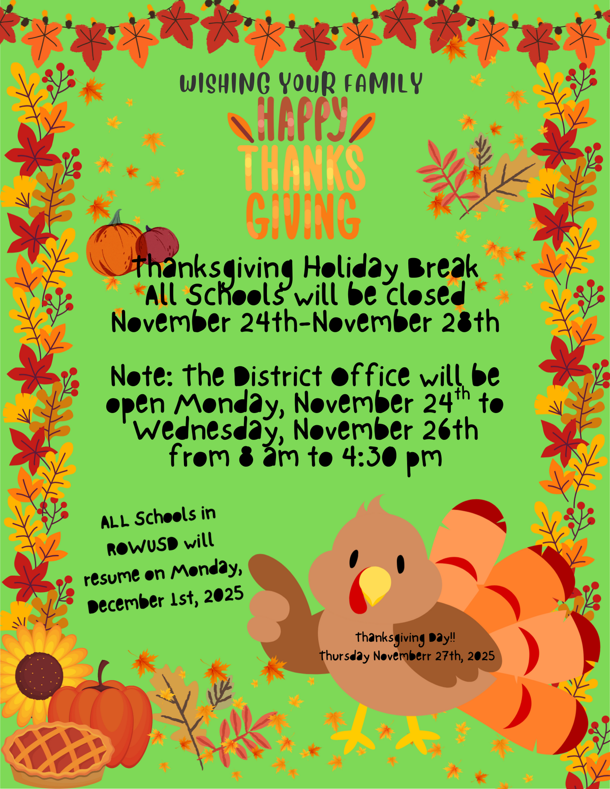 Wishing your family a Happy Thanksgiving. Thanksgiving Holiday Break