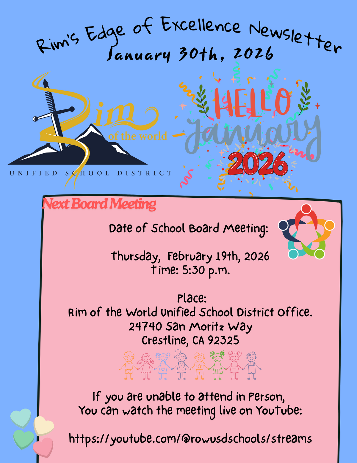 Dear Students, Families, and Staff, We hope you enjoy this final bi-monthly edition of Rim’s Edge of Excellence in January. As we turn the page to February, we are excited to welcome a month filled...