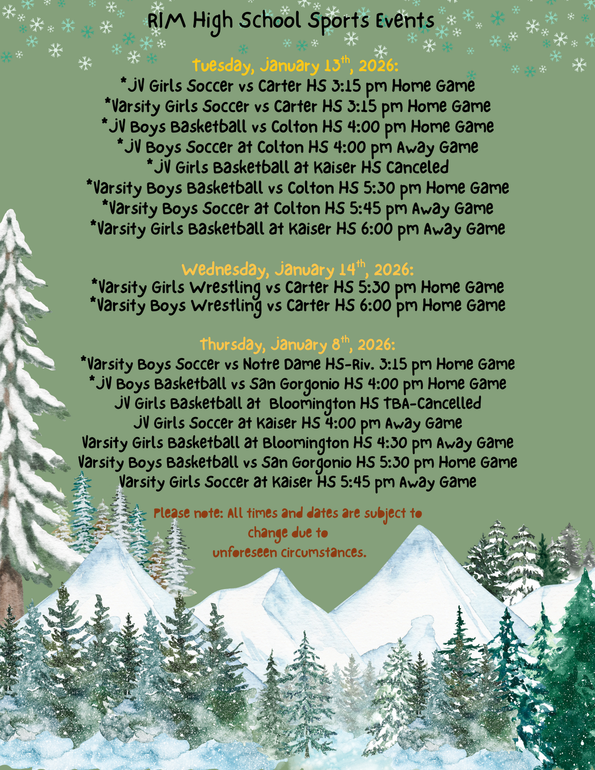 Page: RIM High School Sports Events. Tuesday, January 13th, 2026: