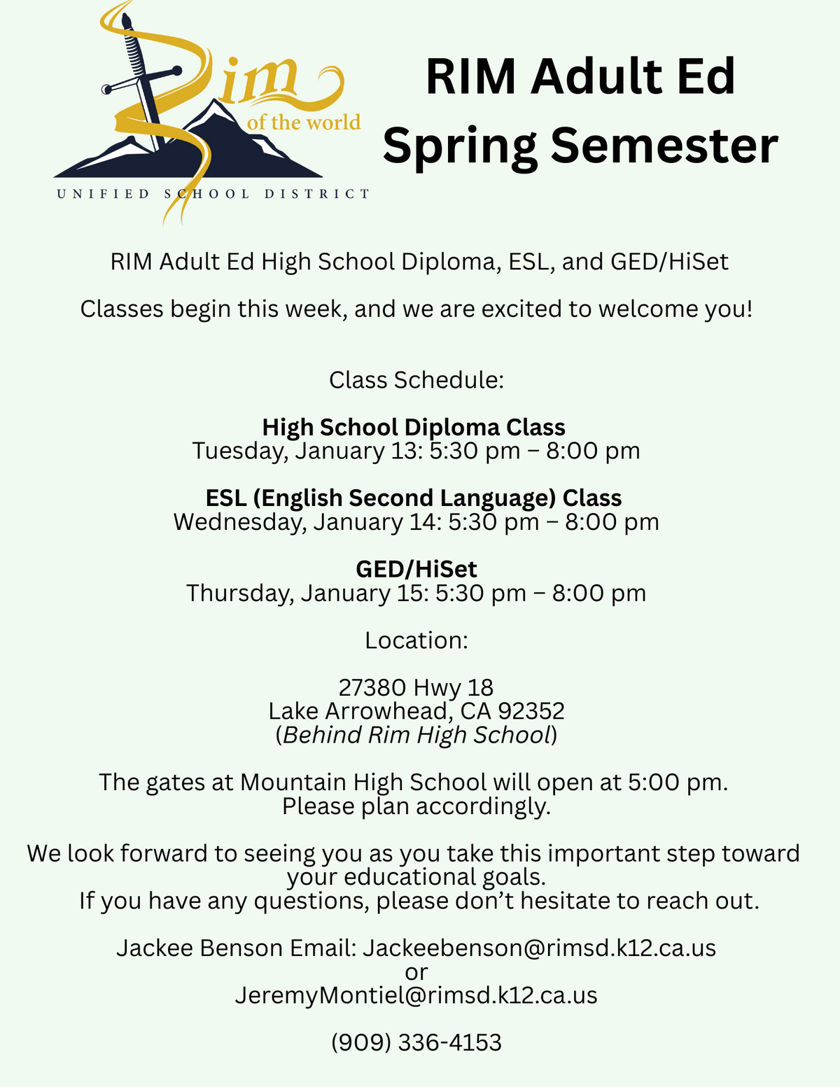 Jackee Benson Email: Jackeebenson@rimsd.k12.ca.us or JeremyMontiel@rimsd.k12.ca.us