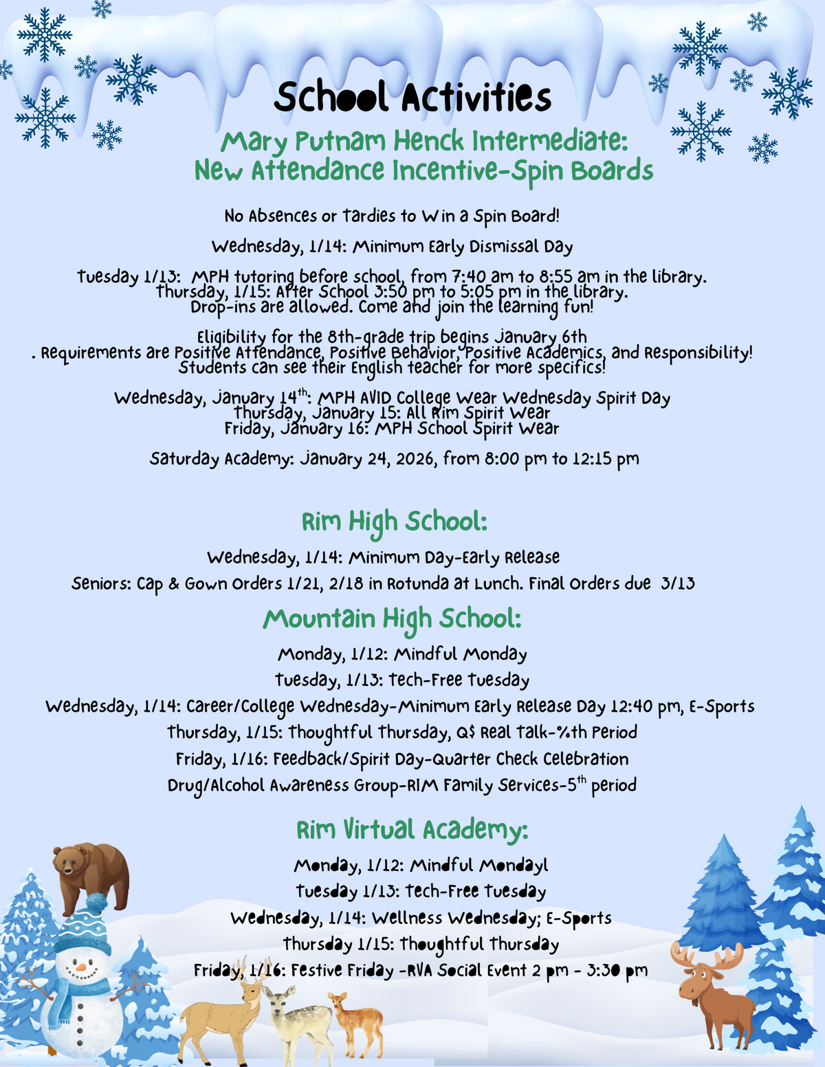 Rim High School: Wednesday, 1/14: Minimum Day-Early Release