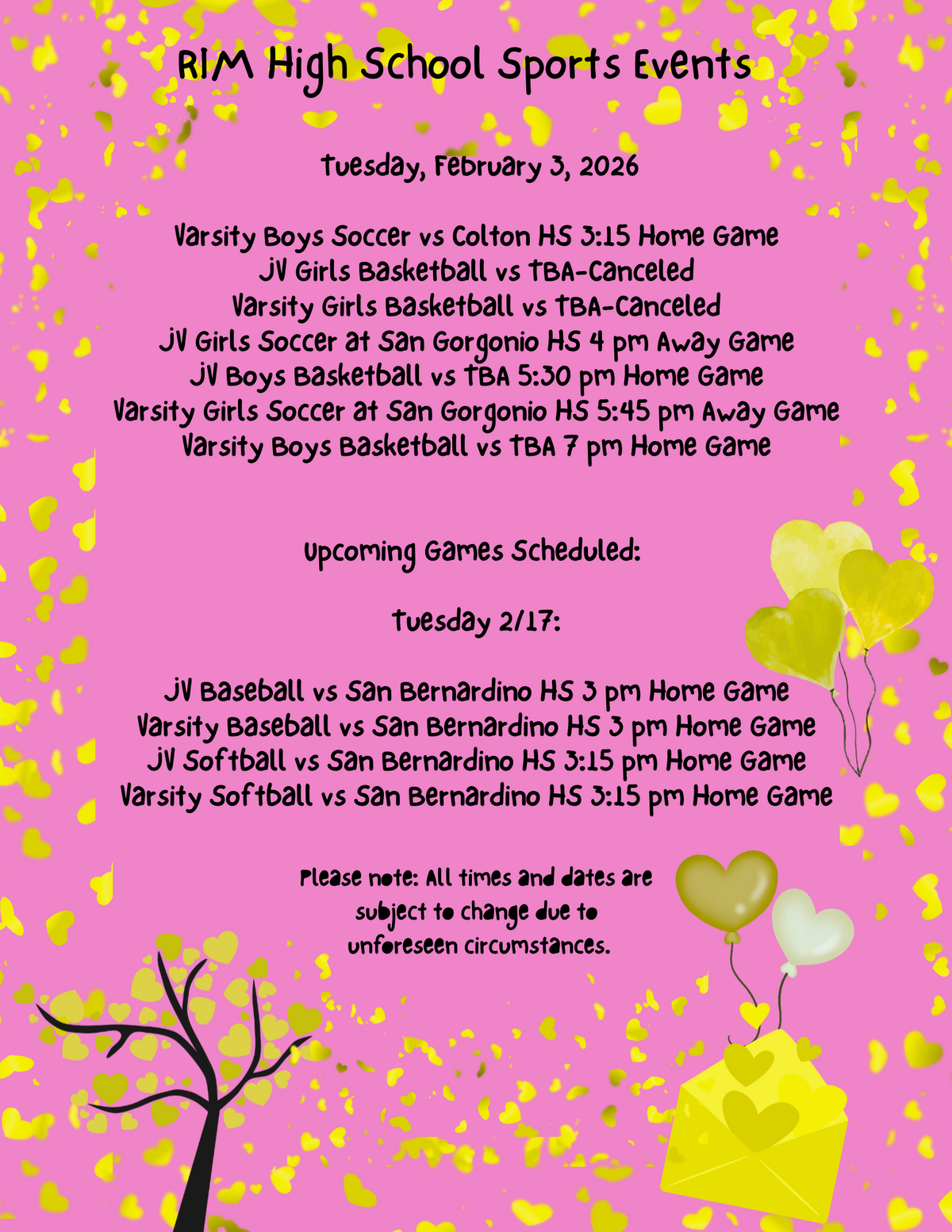 Page: RIM High School Sports Events. Tuesday, February 3, 2026